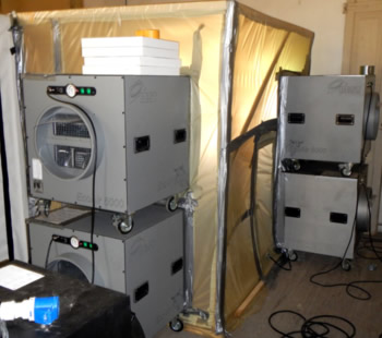 Onze mensen hebben ervaring met het maken van een containment. In sommige situaties is het gewenst dat men voor het verwijderen eerst een frame werk maakt en een gebied afbakent. Men creëert als het ware een gebied binnen een grotere ruimte met een onderdrukmachine.